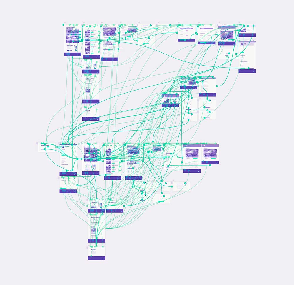 Даже если вы гений, ваши предположения о поведении пользователей на сервисе окажутся ошибочными. Придумывать их «начисто» — пустая трата времени и денег. Запустите MVP и прикручивайте функции к рабочему сервису. Вот такую схему путей пользователей продумали Pinkman в этом проекте: