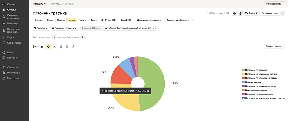 Самое главное, разумеется, что интернет-магазин чётко выполняет свою функцию — продаёт плёнку. Но ведь замечательно, что благодаря нашим усилиям сайт оброс авторитетом (ИКС), вырос в размерах (динамика по этому показателю) и теперь 27% (1424 переходов) в Яндексе и 100% (214 переходов) в Google — это поисковой трафик!