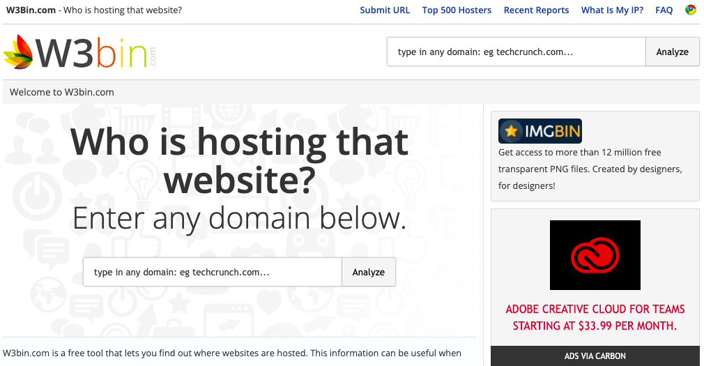 W3bin — полезный интернет-инструмент для определения того, кто разместил сайт конкурента. Эта информация полезна, если вы видите, что сайт конкурента работает лучше с точки зрения скорости и времени безотказной работы, и хотите перевести свой сайт на такой же хостинг. Инструмент пригодится, если вам нужно связаться с хостингом, чтобы сообщить о нарушении.
