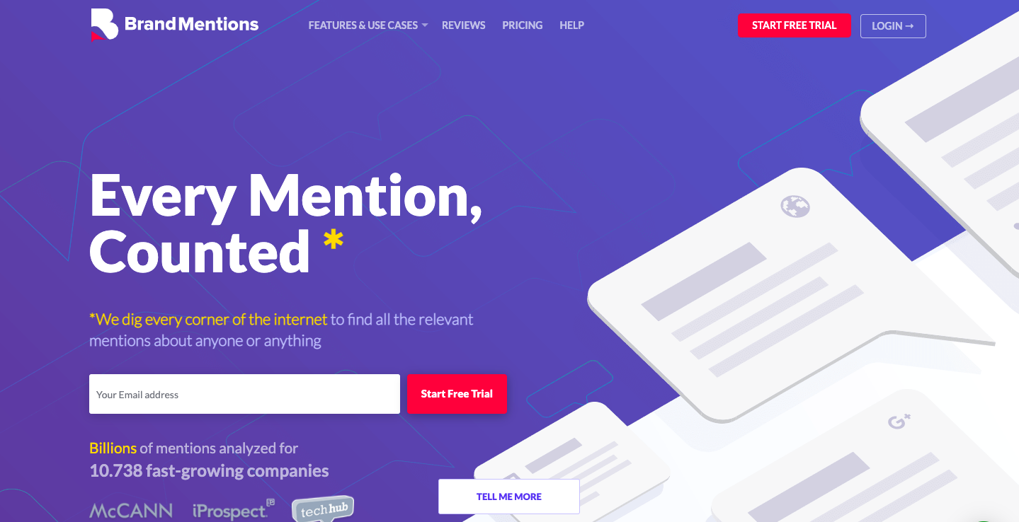 BrandMentions даёт больше, чем просто социальное прослушивание. Вместо этого он позволяет брендам получить полную картину каждой ссылки, сделанной в Интернете. Другими словами, он, как и Talkwalker, расширяет сферу своей деятельности за пределы основных платформ социальных сетей, чтобы охватить и несоциальные сайты. BrandMentions идентифицирует, индексирует и уведомляет вас, если бренд упоминается в новостях, сообщениях в блогах или на сайте обзоров.