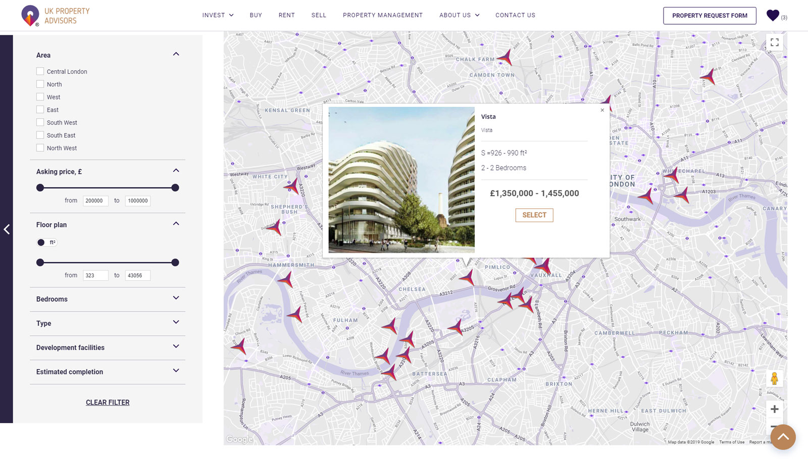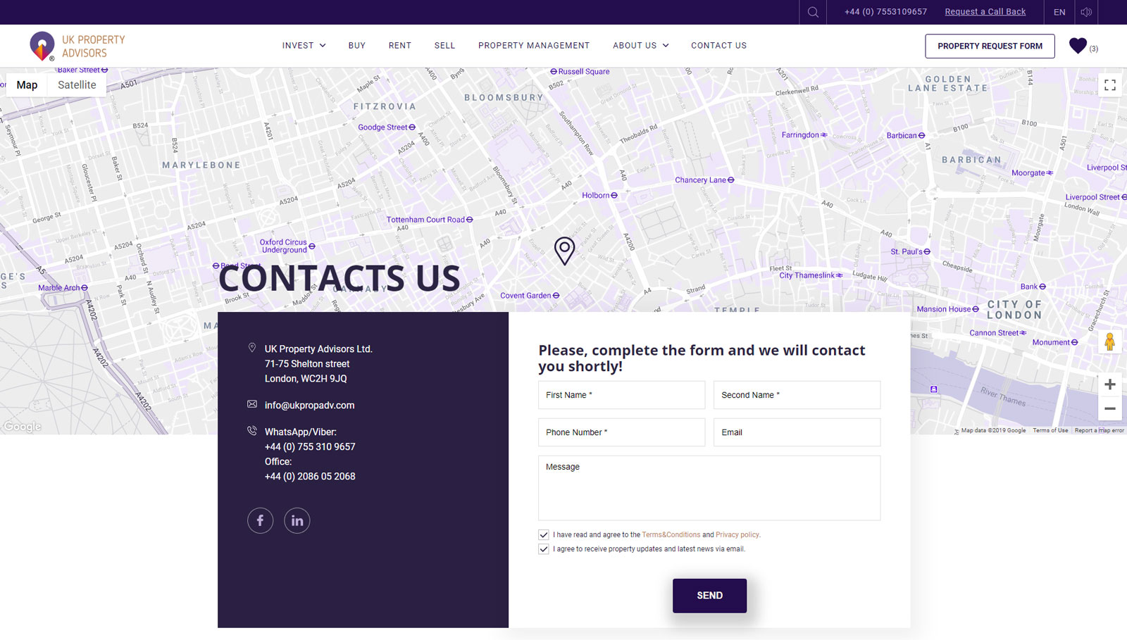 Ядро сайта — каталог объектов, объекты можно сортировать при помощи фильтра или на карте, понравившиеся объекты можно отправить друзьям. Мы проработали структуру сайта. Развели трафик по разным направлениям. Для покупки, продажи, аренды и сдачу в управление на сайте сделали отдельные разделы с каталогами. Каталоги в каждом разделе фильтруются индивидуально, поэтому интегрировали 3 разных фильтра. Сайт мультиязычный и многостраничный. Две языковых версии: английская и русская. Сайт UK Property Advisors Ltd запущен в сентябре 2018 г.
