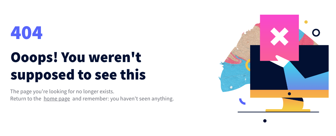 Один простой способ ослабить напряжение на странице 404 — добавить «Ой!». Это поможет вашему сайту выглядеть более привлекательным, поскольку вы направите пользователей в нужное место. А ещё здесь есть иллюстрация.
