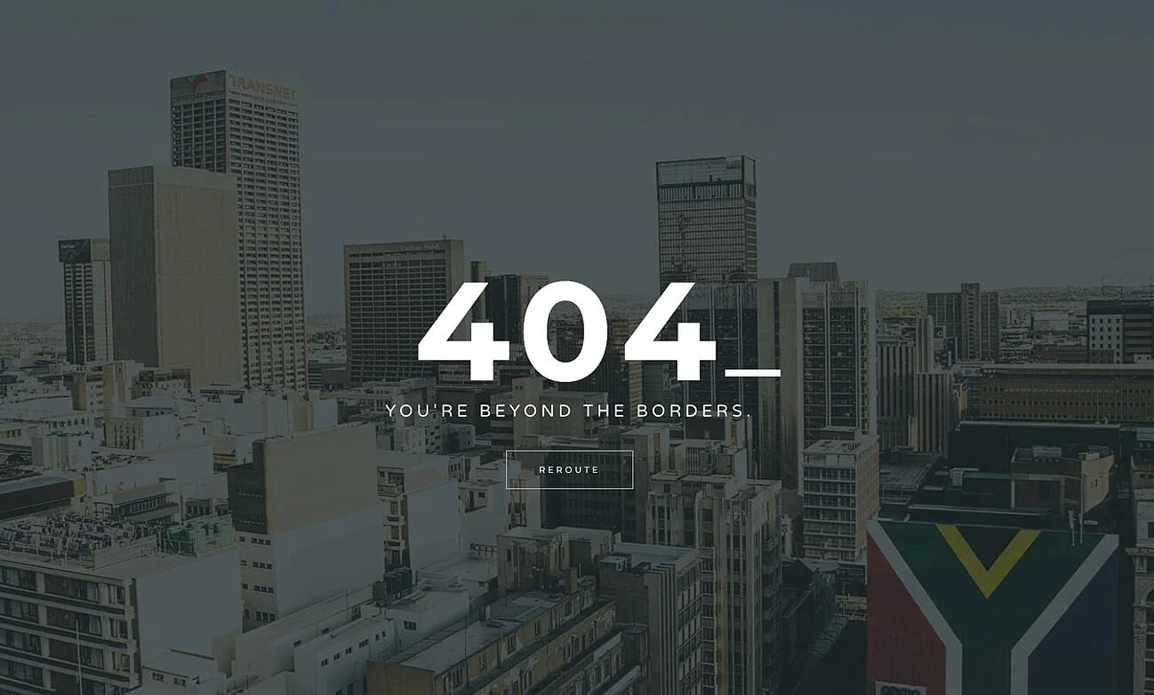 Порой вам может не нужна остроумная аннотация — просто скажите посетителям, что по указанному адресу нет страницы, и позвольте им двигаться дальше. Агентство развлекательного консалтинга Duma Collective так и делает, хотя для зрелищности дополнила 404 страницу фоновым изображением.