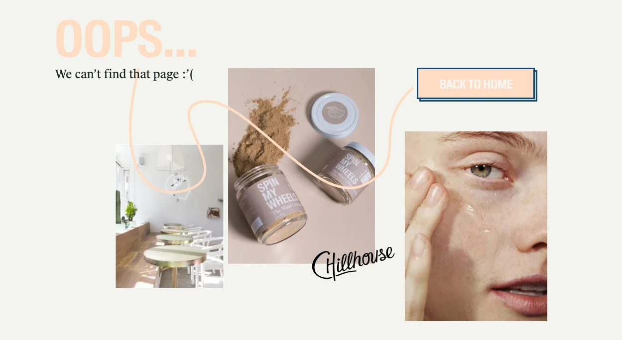 Бренд Chillhouse приложил дополнительные усилия, чтобы стильно перенаправить своих посетителей. Страница 404 брединрована и отправляет посетителей в небольшое путешествие с помощью фотографий прежде чем они вернутся на главную страницу.