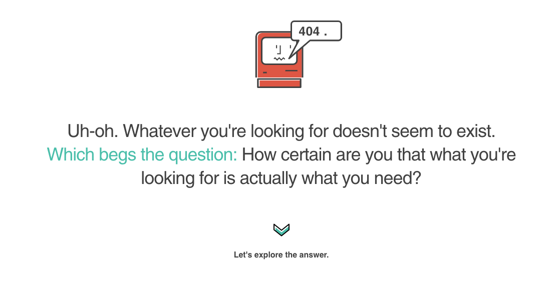 С точки зрения пользовательского опыта, ваша страница 404 должна быть небольшим лежачим полицейским, а не кирпичной стеной. Правильный дизайн может превратить раздражённого посетителя в покупателя!