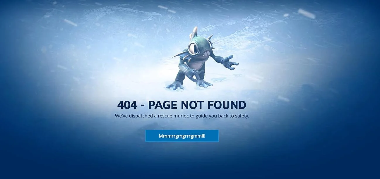 Вот простая идея, которая в конечном итоге выглядит привлекательно: страница 404 Blizzard Entertainment содержит анимированного персонажа, потерянного в настоящей метели, и немного юмора, которые оценят поклонники World of Warcraft.