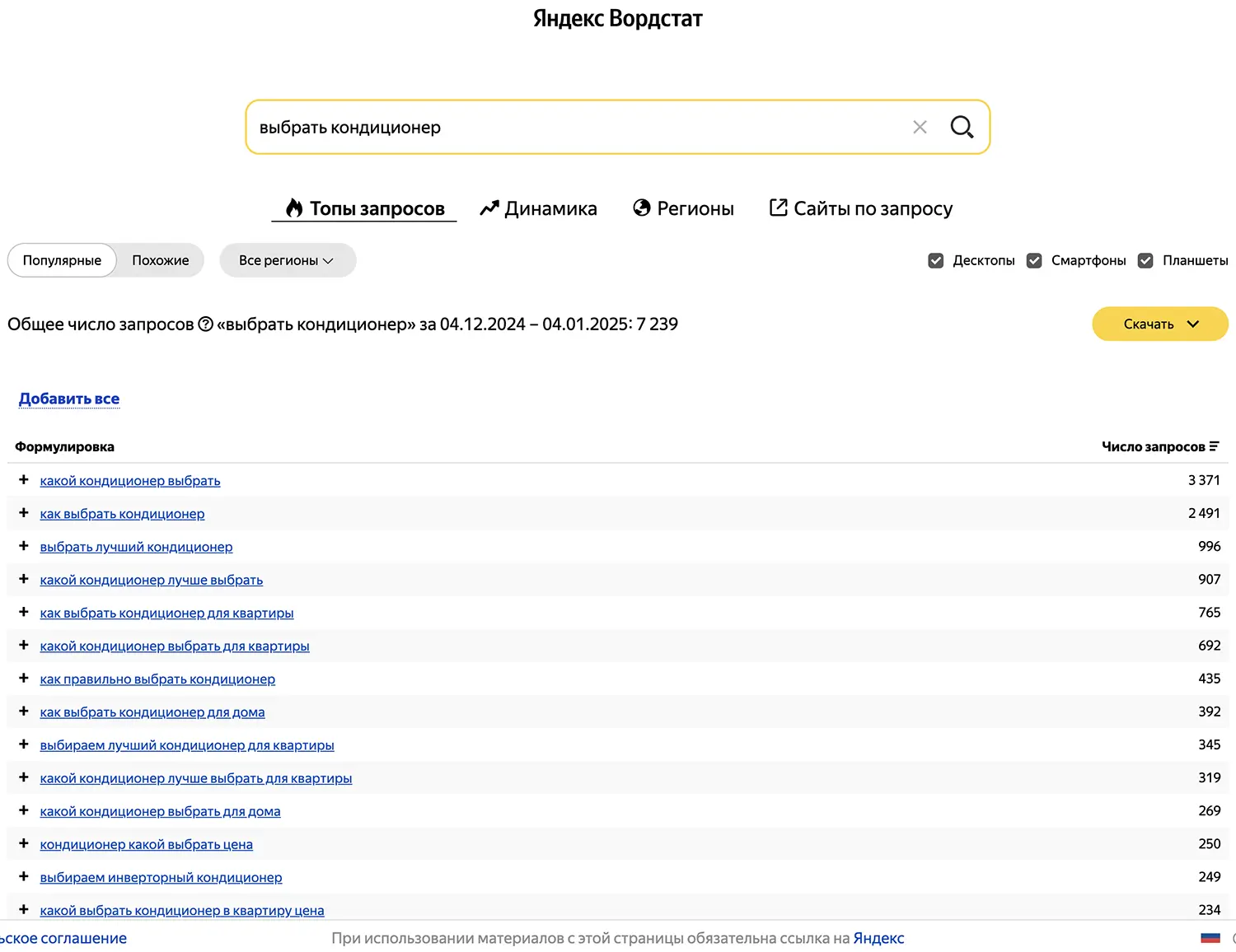 - Найти ключевые слова. Узнать, что люди ищут в интернете по вашей теме.
