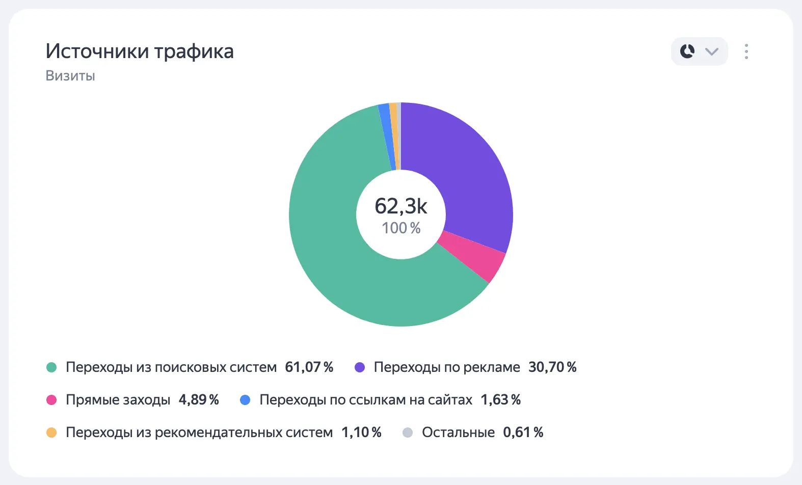 Нас наняли чтобы перестать платить за рекламу в Директе. Мы начали работать когда у сайта было 87% трафика от рекламы: