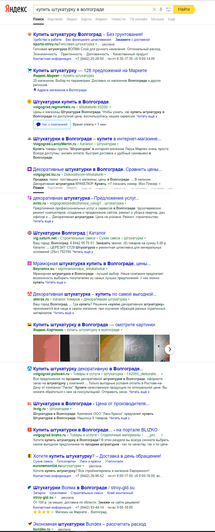Спросил Яндекс где «купить штукатурку в Волгограде». Вот результат: