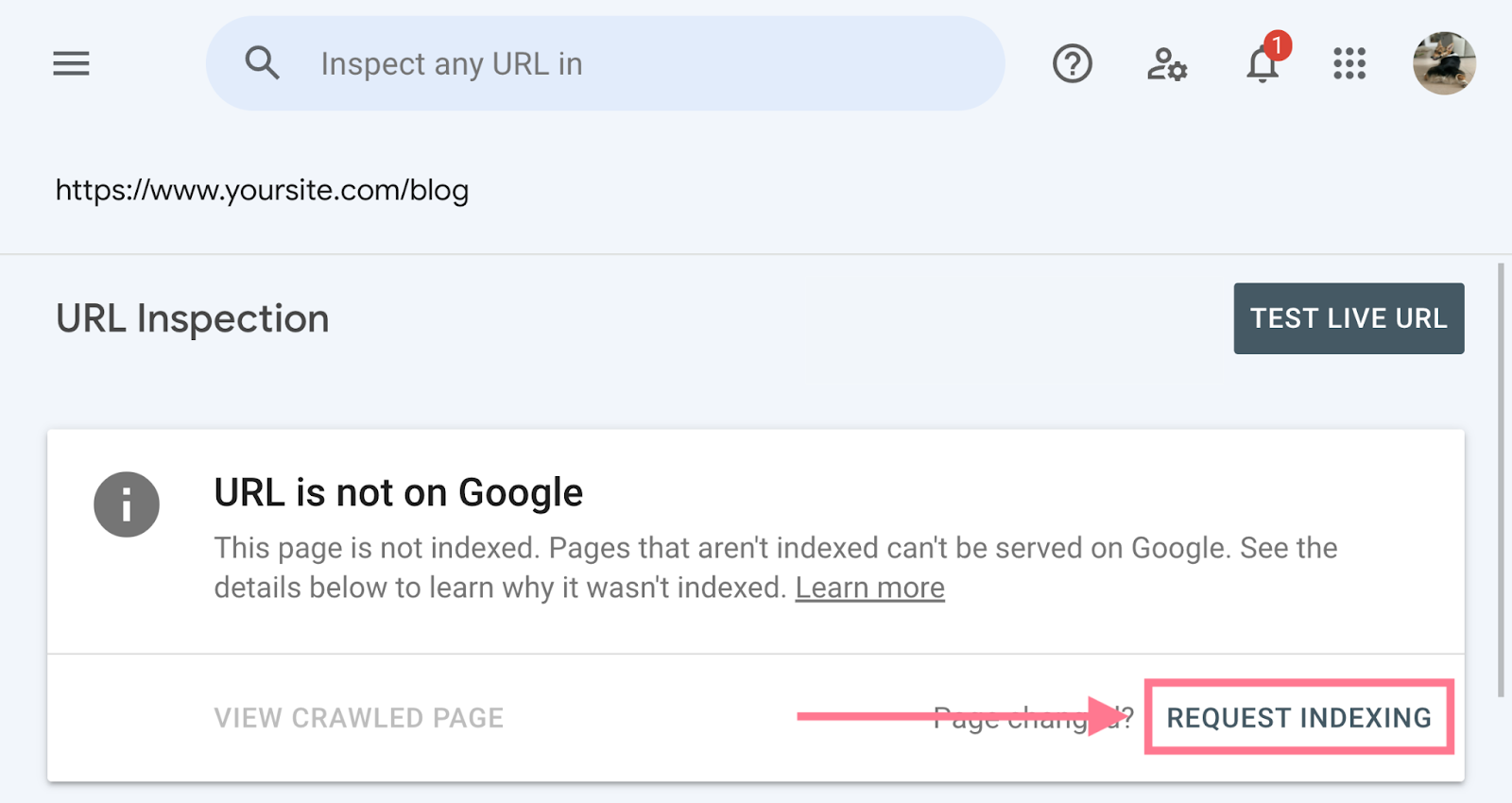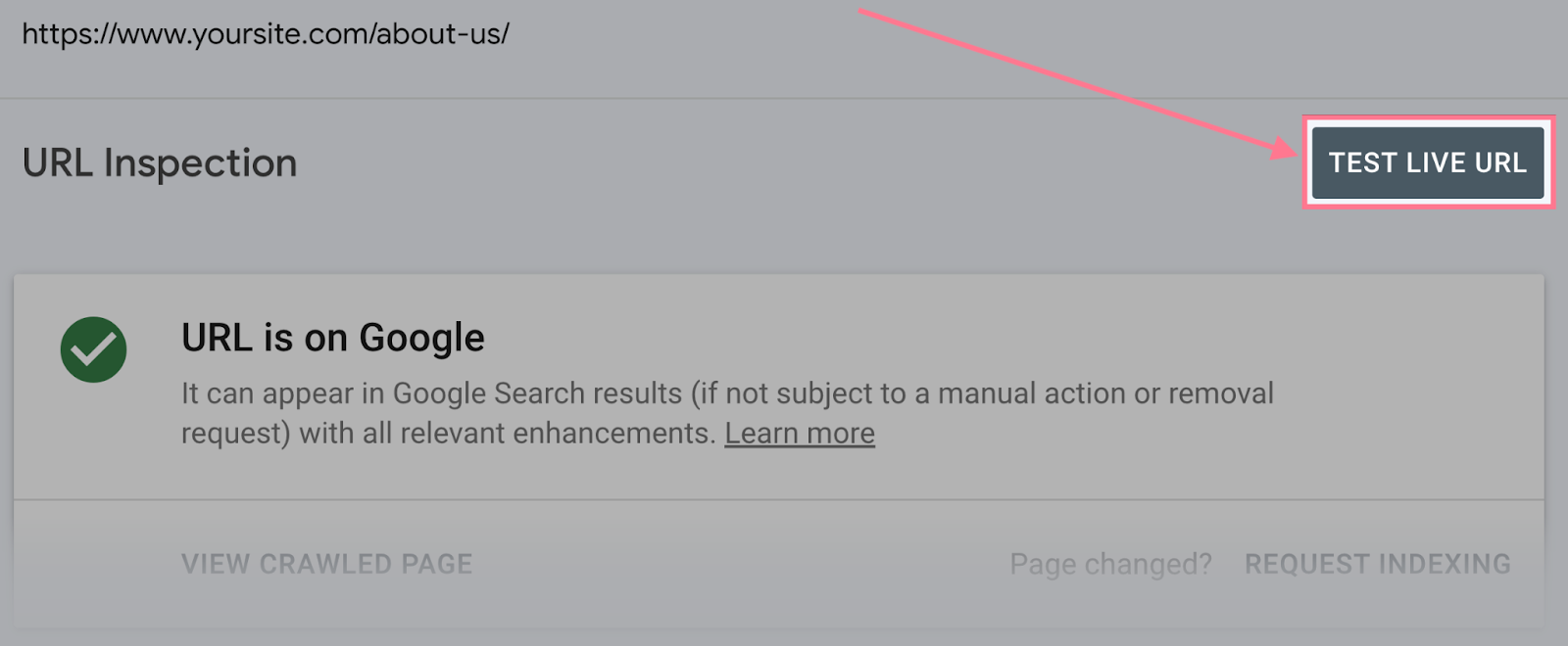 Чтобы проверить статус индекса конкретной страницы, вставьте полный URL-адрес в поле поиска и нажмите клавишу ввода.