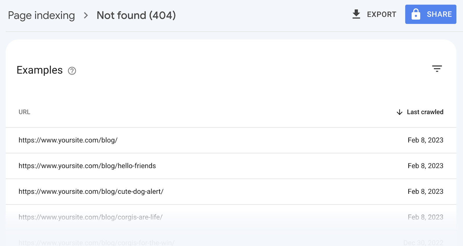 Нажав на запись отправки карты сайта, вы перейдете к отчету для этой конкретной карты сайта.