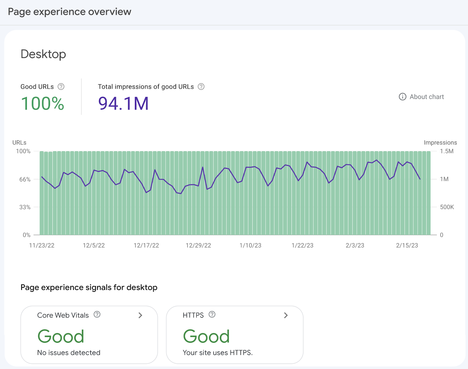 Процент «хороших URL-адресов» показывает, сколько URL-адресов обеспечивают пользователям оптимальную работу со страницей.
