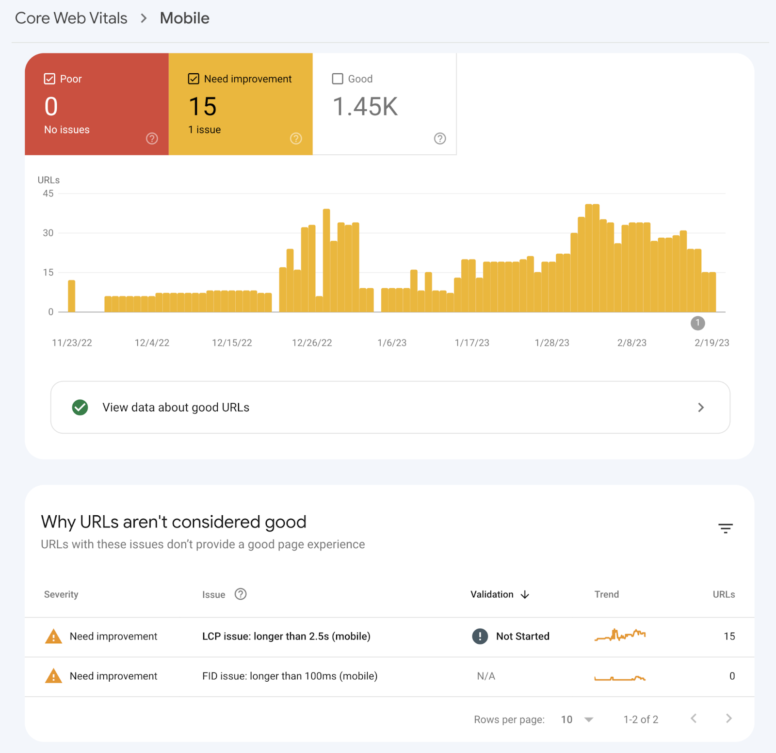 Например, 15 URL из этого ресурса не прошли тест Core Web Vitals. И 224 URL-адреса не прошли тест на юзабилити для мобильных устройств.