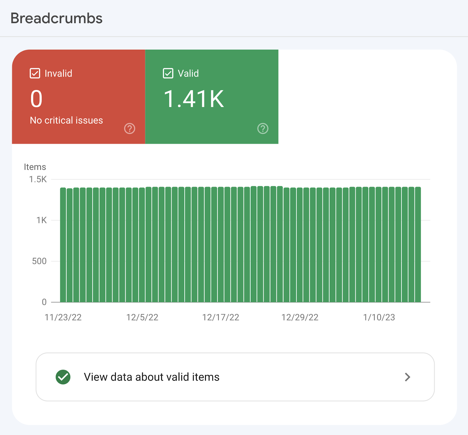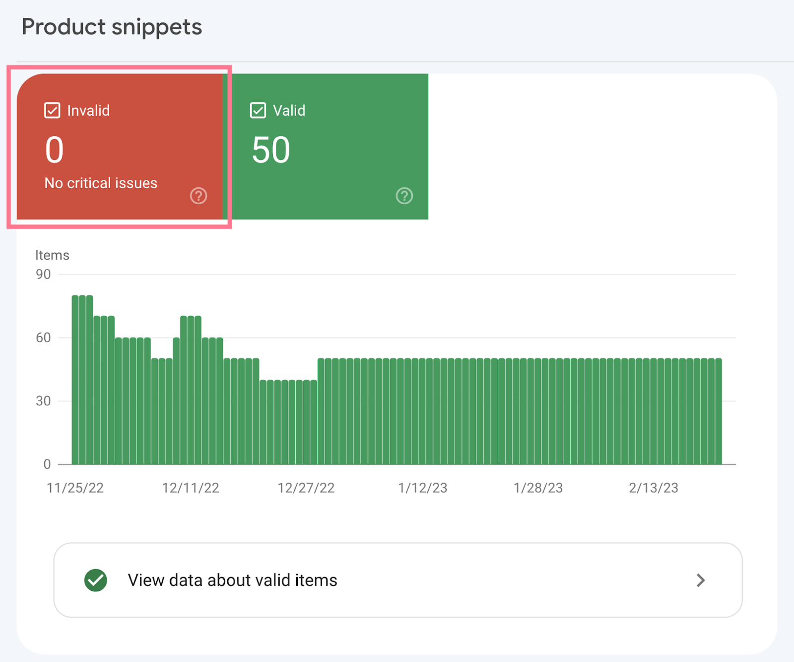 Ваши «Недействительные» элементы должны быть равны нулю. Если есть какие-либо проблемы, затронутые страницы не будут отображаться как расширенные результаты в результатах поиска.