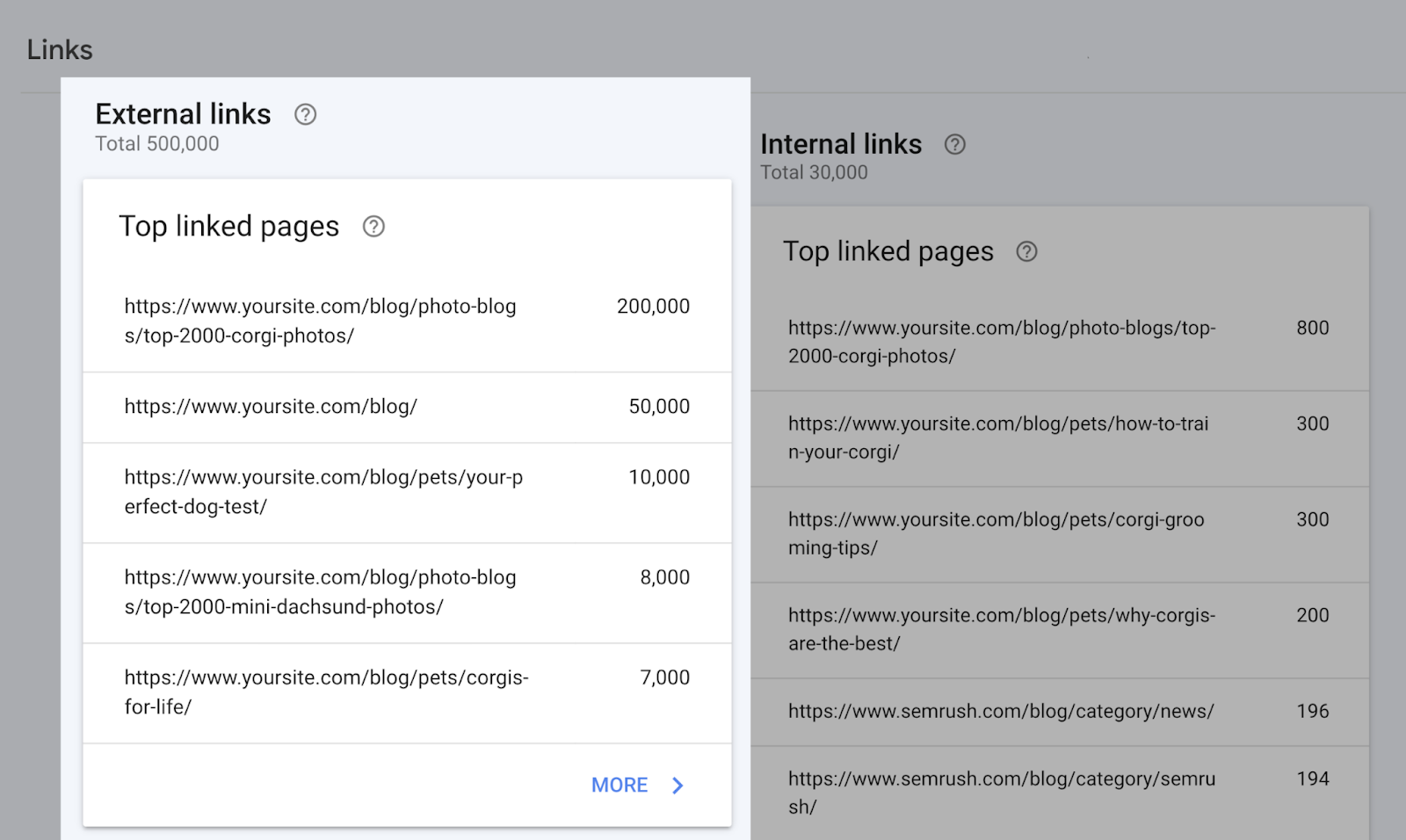 Отчет «Ссылки» показывает, на какие страницы вашего сайта приходится больше всего внутренних ссылок.