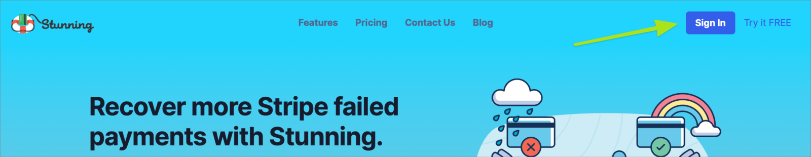 - Измените стили CSS, чтобы не акцентировать внимание на регистрации. Выделите кнопку входа, когда пользователь с cookie посещает сайт. Вот как это выглядит на Stunning: