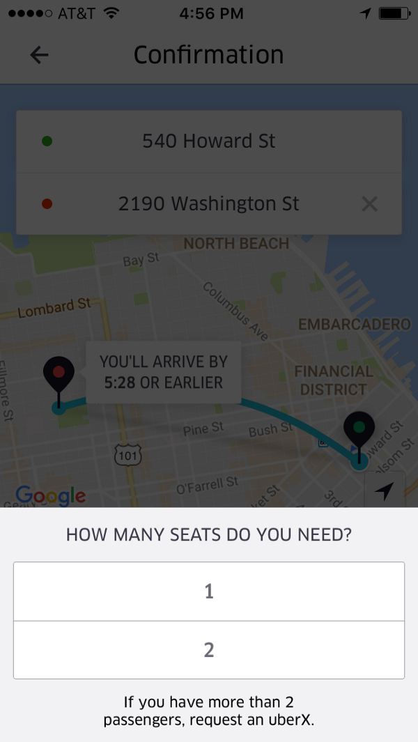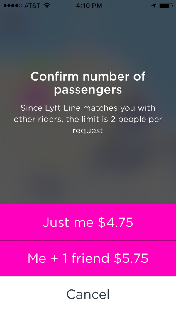 Интересный пример на этот счет приводит в своем материале Лиза Санчез, сравнивая экраны бронирования от Lyft Line (слева) и UberPOOL (справа), которые запрашивают одну и ту же информацию — количество человек, заказывающих поездку. Пример интересен, в частности, тем, что здесь нет противопоставления «правильно / неправильно»; обе компании формулируют запрос так, как того требует выбранный стиль общения. Lyft Line оформляет интеракцию в виде приятельской беседы: ответ пользователя написан от первого лица, варианты звучат неформально и вызывают позитивные ассоциации («Я с другом»). Uber на его фоне суховат и лаконичен, здесь чувствуется более сдержанный, деловой подход: «друзья» превращаются в «места», а ответы сокращаются до одной-единственной цифры.