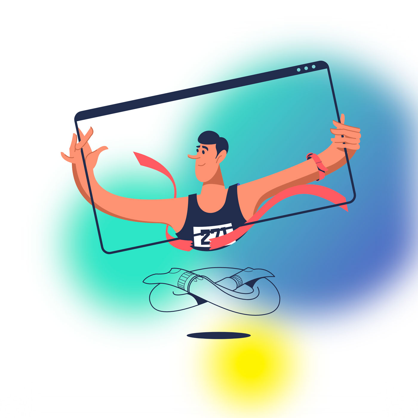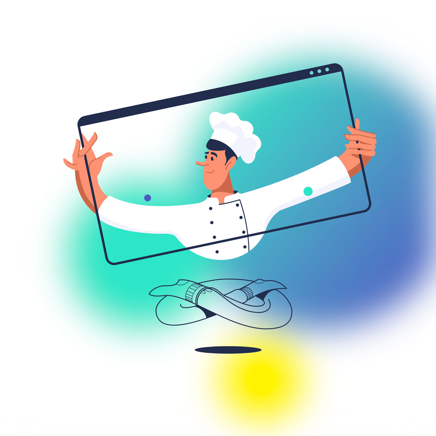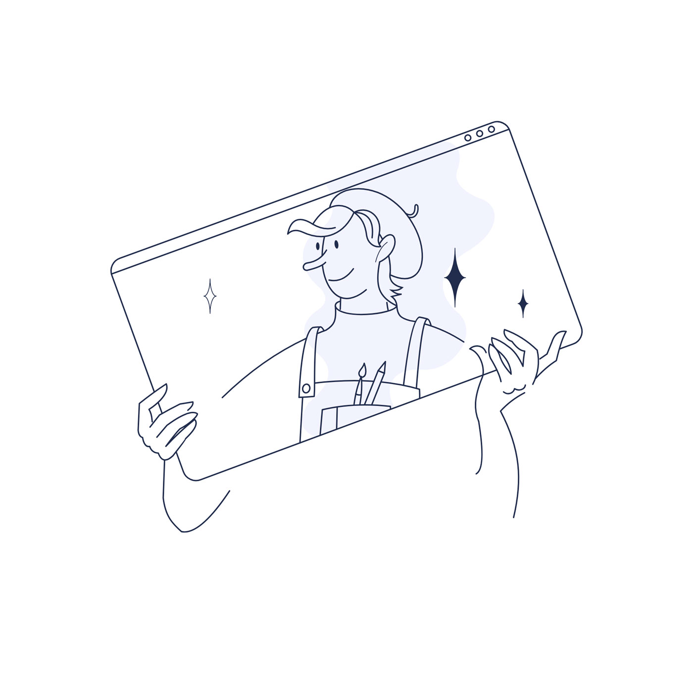 Для главной страницы был придуман парящий персонаж, который примеряет профессии.